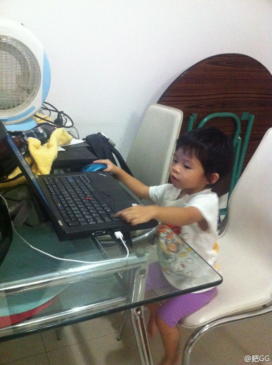 薯饼童趣 2012.10.16 小妹妹屁股坐地上挪来挪去滑动,说,“妹妹要回家”,“坐火车,坐地铁,坐船,坐bus,坐的士”,坐火车的时候自己叫,“呜,轰隆轰隆”,坐船的时候自己唱,“摇,摇,摇小船”。这是小妹妹第一次自己想了个游戏出来并乐在其中。 #薯饼MM# 对坐在电脑旁的爸爸说“爸爸唔好坐响度(不要坐这里)”,将爸爸赶走之后,爬上椅子,正儿八经地拿鼠标按键盘,还念念有词“妹,做嘢啦,唔得闲啊(在干活,没有空啊)” 这不是爸爸平时工作中招呼她的话么?