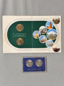 十一届亚运会的纪念币,1990年北京亚运,那两枚银币,币值2元,靠老妈在银行工作的学生帮手买到的